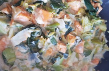5/ mix 2 and 3, pour the mixture over the croissants